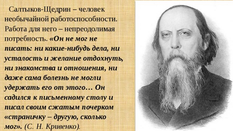 Вятка, Владимир, Пенза, Тула, Рязань — восемь долгих лет биография Михаила Евграфовича Салтыкова-Щедрина будет протекать в российской глубинке. Бывший царскосельский лицеист будет переезжать с одного места службы на другое, конфликтуя с начальством и изведав на себе все прелести рутинной чиновничьей работы. Параллельно он продолжает писать, творчество Салтыкова-Щедрина М.Е. в это время приобретает уже настолько ярко выраженное обличительно-сатирическое звучание, что появление в 1856 г. его «Губернских очерков» дает основание некоторым критикам назвать его наследником гоголевских традиций.